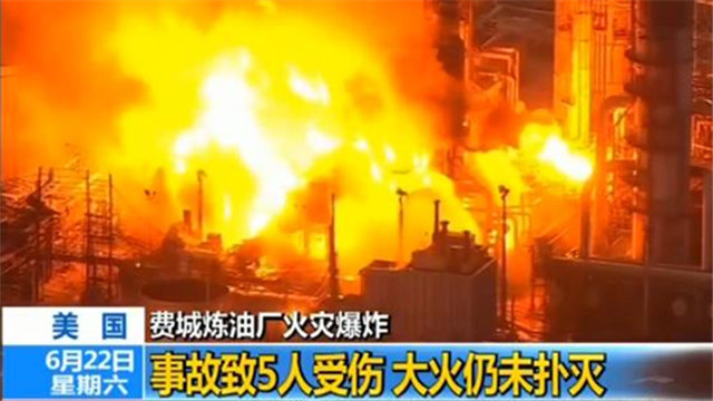 美国费城炼油厂火灾爆炸 事故致5人受伤 大火仍未扑灭