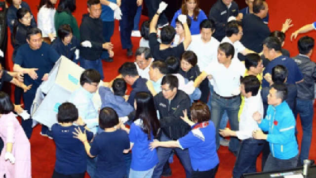 台立法机构临时会本周处理监察机构人事同意权案,原定14日到16日进行被提名人审查会,但因国民党民代连续三天占据议场主席台,导致审查程序无法进行。16日下午,民进党民代强力清场,蓝绿双方爆发肢体冲突。台立法机构负责人游锡堃在混乱中宣布通过民进党团提案、17日进行监察机构人事同意权投票。