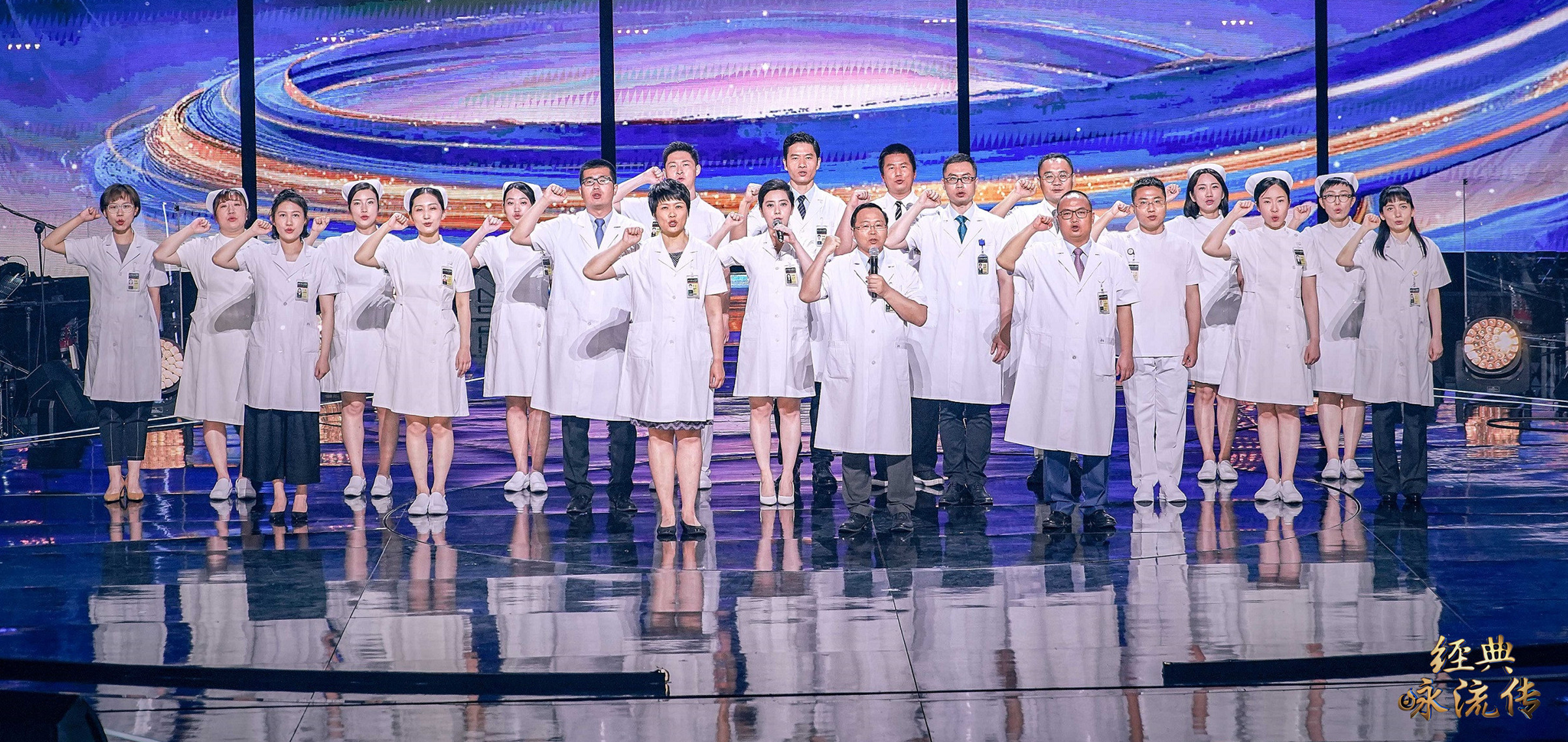 在《经典咏流传》的舞台上,武汉协和医院的医护工作者们曾以一首《和你在一起》,向所有并肩作战的抗疫战士表示感谢。如今,北京协和医院国家援鄂抗疫医疗队和同事们来到节目现场,共同演唱他们在疫情期间联合创作的歌曲《守护》,同样温暖人心。值得一提的是,这首歌还融入了文天祥的诗作《彭通伯卫和堂》,既展现出医护工作者的专业严谨,也让人感受到他们保家卫国的“医者仁心”。