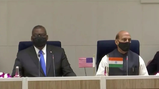 印度国防部长拉杰纳特·辛格3月20日与来访的美国国防部长奥斯汀举行会谈。辛格在会后发表声明说,双方就军事合作、情报共享、后勤支持等举行了“全面而富有成果的讨论”。双方同意继续加强印度军方与美军印太司令部、中央司令部和非洲司令部之间的合作。(图为:辛格与奥斯汀会谈现场。)