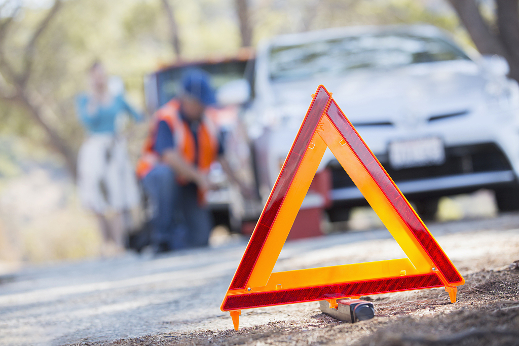 如果车辆在高速公路上发生爆胎等故障,车辆能移动的,应及时将车辆驶离靠边停车。车辆不能移动的,应在车辆后方150米的位置摆放三角警示牌,开启双闪,同时车上人员要撤离到护栏外面,然后联系道路救援,以最大限度地防止二次事故的发生。