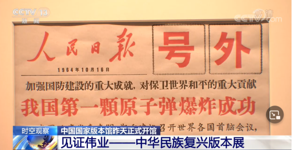 第一张刊登原子弹爆炸成功的报刊《人民日报》号外,等等。