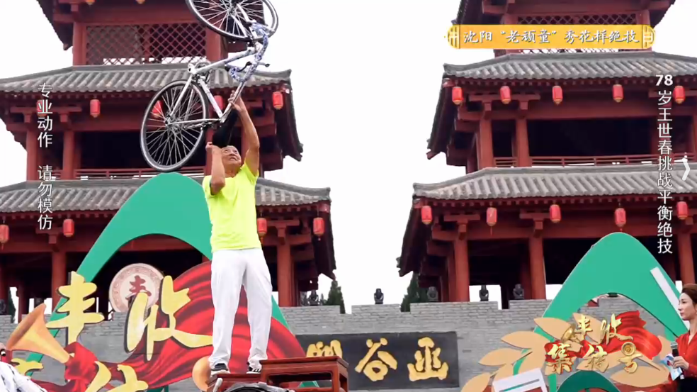 同样无畏岁月的“不老玩家”,还有来自辽宁沈阳的王世春。现年78岁的他始终坚持健身锻炼,能绕浑河骑行20公里,也能在社区器械区倒立撑10分钟,掌握了独轮车、平衡车、自行车、篮球等100多种绝活技艺。他还把废旧轴承改成可360°旋转的独轮车踏板,把小区花坛边石墩刷成“平衡木”,充分展示了什么叫“生活处处是舞台”,只要想运动,哪里都是健身房。王世春说,来到《丰收集结号》,就是想“让全世界都看到我们中国老年人的精气神儿!”