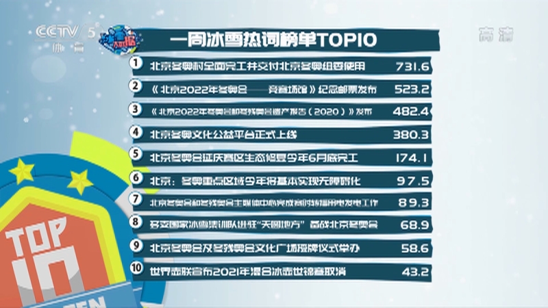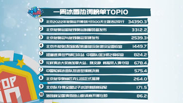 [北京2022]冰雪大数据:一周冰雪热词榜单TOP10